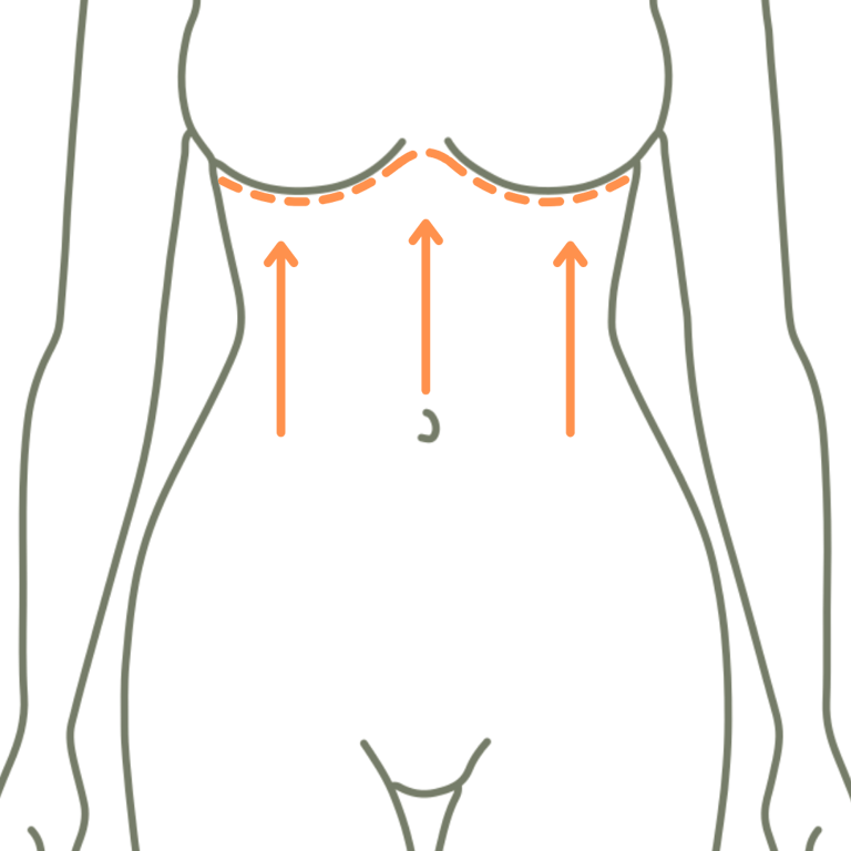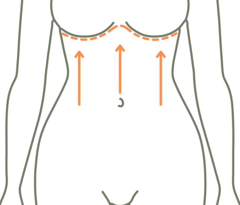 Diferente da abdominoplastia tradicional, que corrige a região inferior, a abdominoplastia reversa remove o excesso de pele da parte alta do abdômen, puxando-a para cima em direção às mamas.